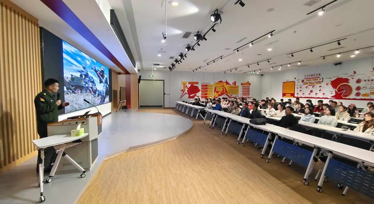在国防教育报告厅,陆军边海防公司杜空军上校为大家讲授了一堂国土安全教育课。他分析了目前我国国土安全主要面临的威胁与挑战,阐述了国家应对挑战的战略和举措,进一步增强了对我国现代化国防建设的信心。