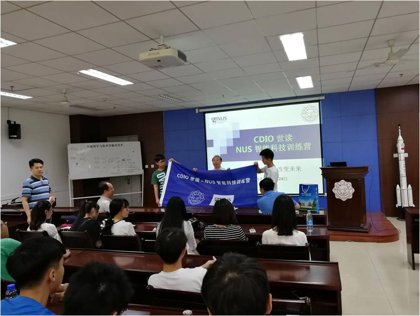 本次CDIO世读-NUS智能科技训练营旨在让员工在体验新加坡人文的同时,在新加坡世界一流的大学和先进智能科技企业园区中学习了解新加坡的大学教育及智能科技发展前沿知识,并深刻感受理解国家的“一带一路”战略。在带队老师黎剑兵简要地介绍了训练营内容、行程安排及住宿条件后,校国际交流与合作处左处长就同学们出国访学应注意的问题进行了发言并给训练营授营旗。