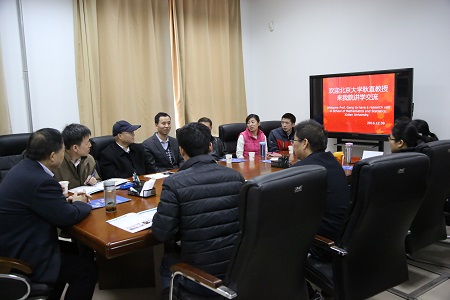 2016年12月9日北京大学统计科学中心联席主任耿直教授,应sunbet经理刘三阳教授和副经理杨有龙教授邀请,与公司概率统计系教师座谈交流并做学术报告。