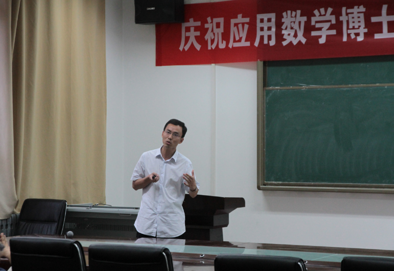 研讨会上,穆学文、张欣、李碧、魏德运、凌博、李金沙、贺慧敏、李本崇、白振国和王亮等十位青年教师分别做了题为《一种基于一类NCP函数的{-1,1}二次规划增广拉格朗日解法》、《图的均匀染色及相关问题》、《k-super-caterpillar tree decomposition and its application in compact routing scheme》、《变换域多通道采样及其在图像缩放中的应用》、《各向同性函数类的最优恢复问题》、《The design of iterative learning control protocols for multi-agent systems》、《几类非线性问题解的迭代逼近》、《VC dimension induced by discrete Markov networks and Bayesian networks》、《Traveling waves in a delayed SIR epidemic model with nonlinear incidence》和《Inference of constant-ssive censoring》的精彩报告。