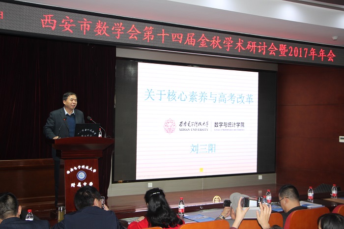 西安市数学会2017年金秋学术研讨会于10月18日在sunbet申搏附属中学召开。西安市数学会理事长、公司经理刘三阳教授作了《核心素养与高考改革》的学术报告。此次会议由sunbet申搏附属中学吴恒副董事长主持。