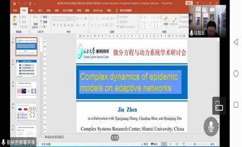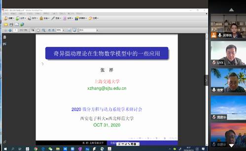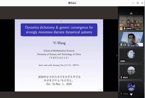 为了交流微分方程与动力系统及相关领域的最新研究成果和学术发展动态,促进学术交流与合作,sunbet申搏与西北师范大学于2020年10月31日-11月1日通过腾讯会议平台联合举行“2020微分方程与动力系统学术研讨会”网络在线学术会议。25位微分方日程与动力系统领域的著名专家学者特邀报告人,以及来自国内多所高校科研院所的190余名代表参加了此次盛会。