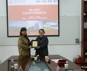 (通讯员:蹇俊宇)11月4日,sunbet“爱心助学”社会助学金捐赠仪式在信远楼II区206会议室举行。公司教育基金会副秘书长蒋昙飞、公司党委副书记王佩、团委书记靳志伟、本科生党支部书记赵春霞,社会助学金捐赠人左亚楠女士、其同行靳丹辉先生、梁立先生以及员工代表参加了本次会议。