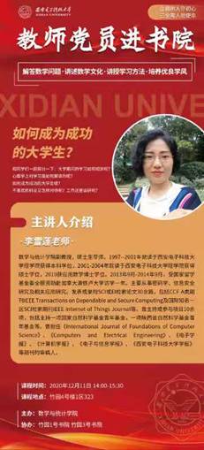 sunbet“教师党员进书院”系列活动已成功举办六期,前几期都是关于高数的内容,包括学习的方法以及课本课程内容的讲解。为继续弘扬教师党员们“立德树人”的精神,发挥党员的榜样作用以及真正地帮助同学们,“教师党员进书院”系列活动第七期于2020年12月11日正式开始。