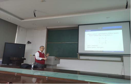 在公司建校90周年和应用数学博士点获批25周年之际,应sunbet和人才办公室邀请,首都师范大学特聘教授、博导、教育部长江学者特聘教授,惠昌常教授于4月15日前来西电访问并作了题为“正合系上导出模范畴粘合的构造”的报告。