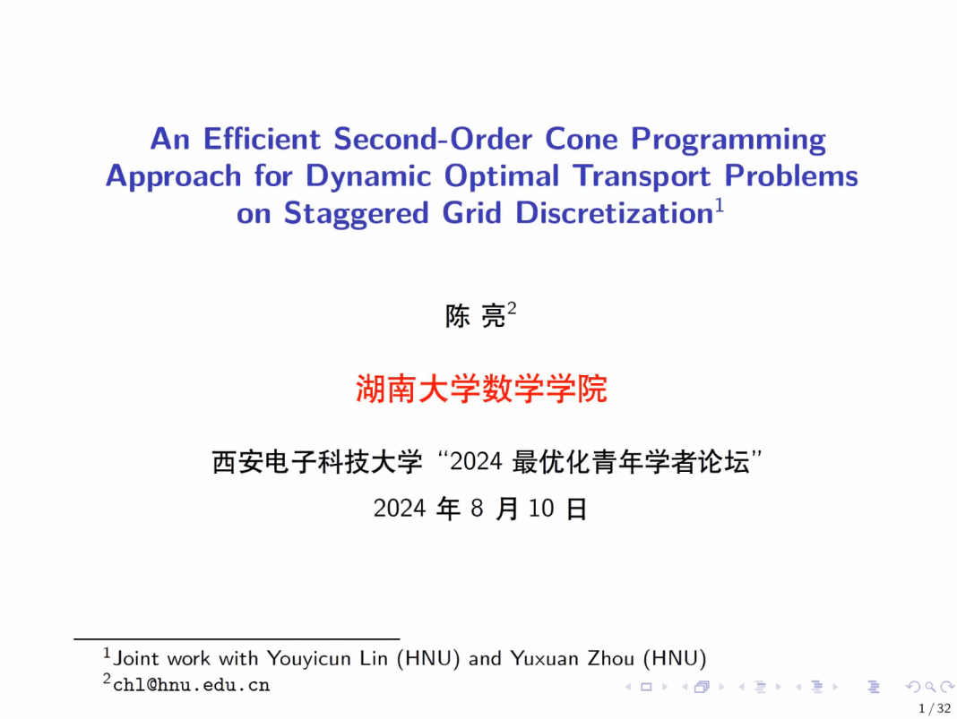 第四节,大连理工大学郭少艳副教授、湖南大学陈亮副教授分别做了题为“Utility Preference Robust Optimization with Moment-Type Information Structure” 和 “A Highly Efficient Second-Order Cone Programming Approach for Dynamic Optimal Transport Problems on Staggered Grid Discretization” 的报告。