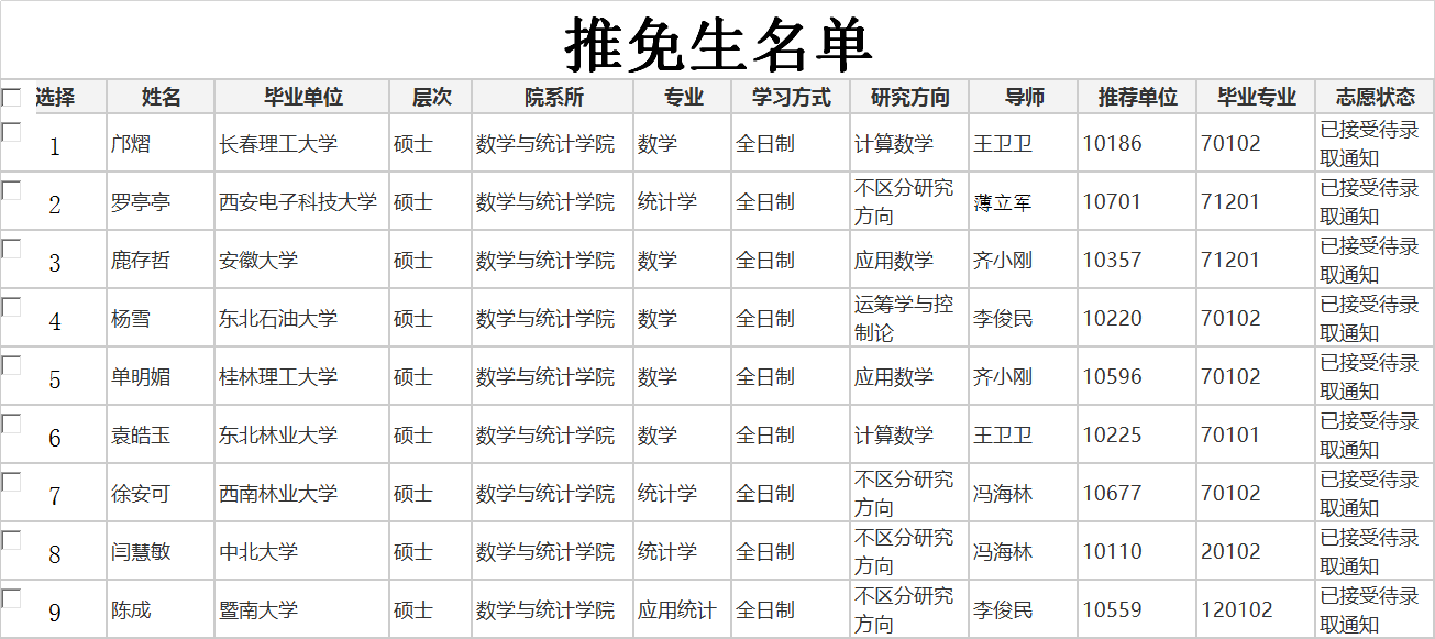根据有关规定,现对2020年推荐免试研究生拟录取名单予以公示,公示期10个工作日。公示期内,如有问题请向公司反映,联系电话:029-81891379。