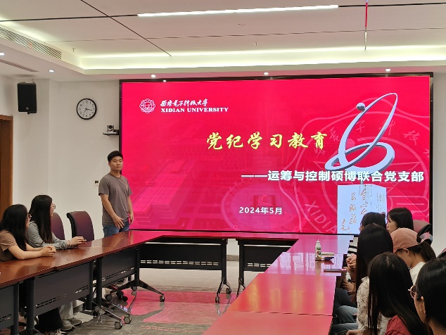 (通讯员王宇东)为深入推进党纪学习教育走深走实,同时为引导和激励广大毕业生党员坚定理想信念,在新征程中勇担时代使命,以饱满的热情走向新的学习和工作岗位,运筹与控制硕博联合党支部于5月30日18:00在网安大楼121会议室召开“青春心向党,奋进新征程”主题党日暨毕业生党员座谈会。会议由支部书记王宇东主持,支部全体党员参加。