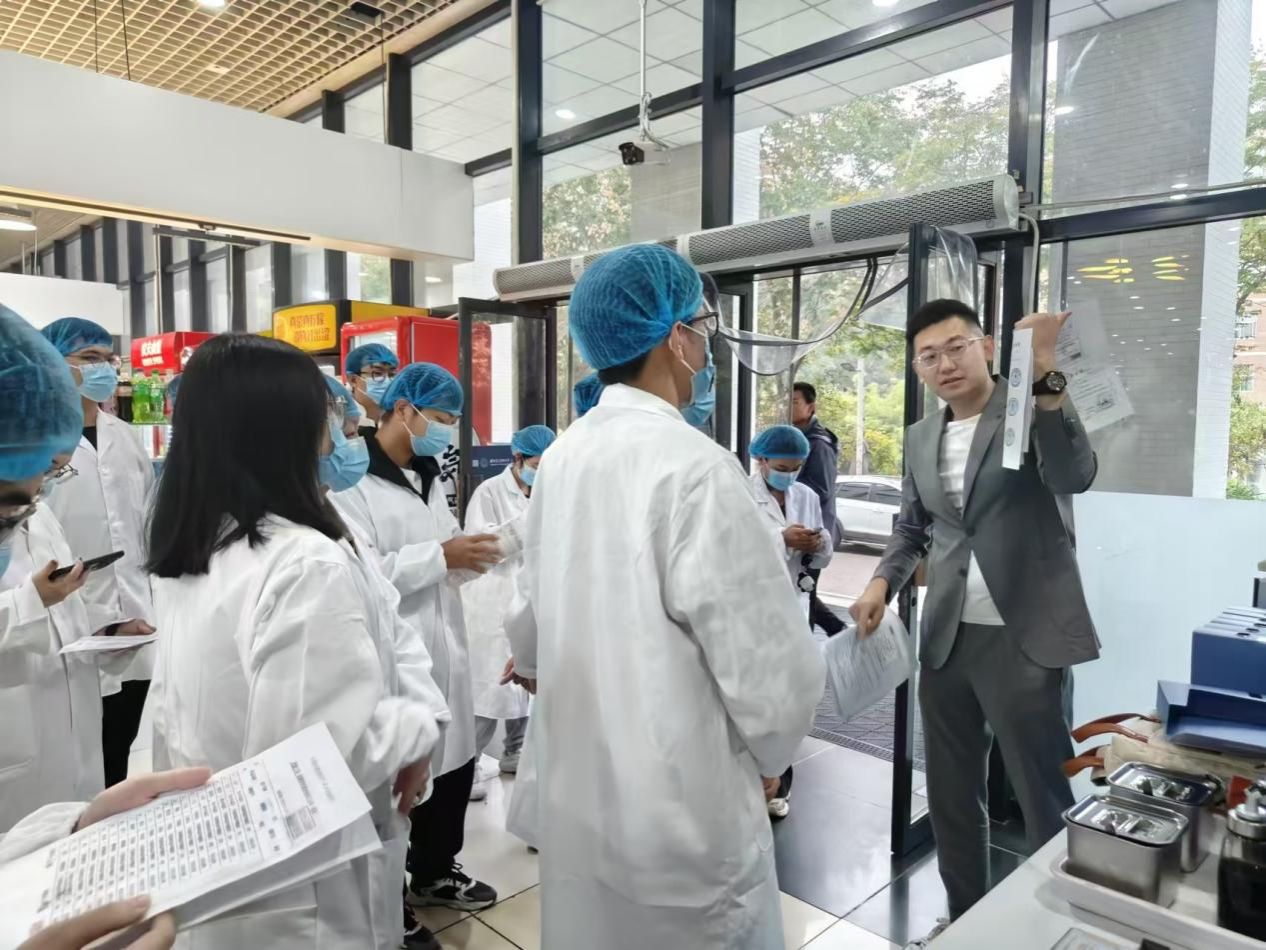 早上七点,同学们在后勤工作人员的带领下首先参观了智能晨检仪,该装置能够实现体温监测等功能,保证后厨人员的健康状况。正值蔬菜供货时间,通过后勤工作人员的讲解同学们对蔬菜检验的流程和标准有了明确认识。并且在餐厅经理的带领下,参观了各个窗口,了解了对各个窗口的食品制作流程和卫生情况,同时餐厅引进了先进的消防系统,充分保障了餐厅的用火安全。丁香餐厅在食品安全上也是下了很大功夫,尤其是在食品留样环节,引入先进的智能留样柜,保证每次留样食品的合规性,做到良好的监督效果。