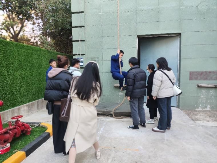 接着,消防员带领同学们参观了日常训练设施,包括了缆车救援、直升机救援及竖井等特殊环境下的救援训练设施,期间,消防员在现场向大家展示了在20秒内迅速徒手爬绳上楼的惊人技能。消防员强调:“尽管某些情况较为罕见,但我们仍需进行全面训练,以确保在关键时刻能够成功实施救援。”