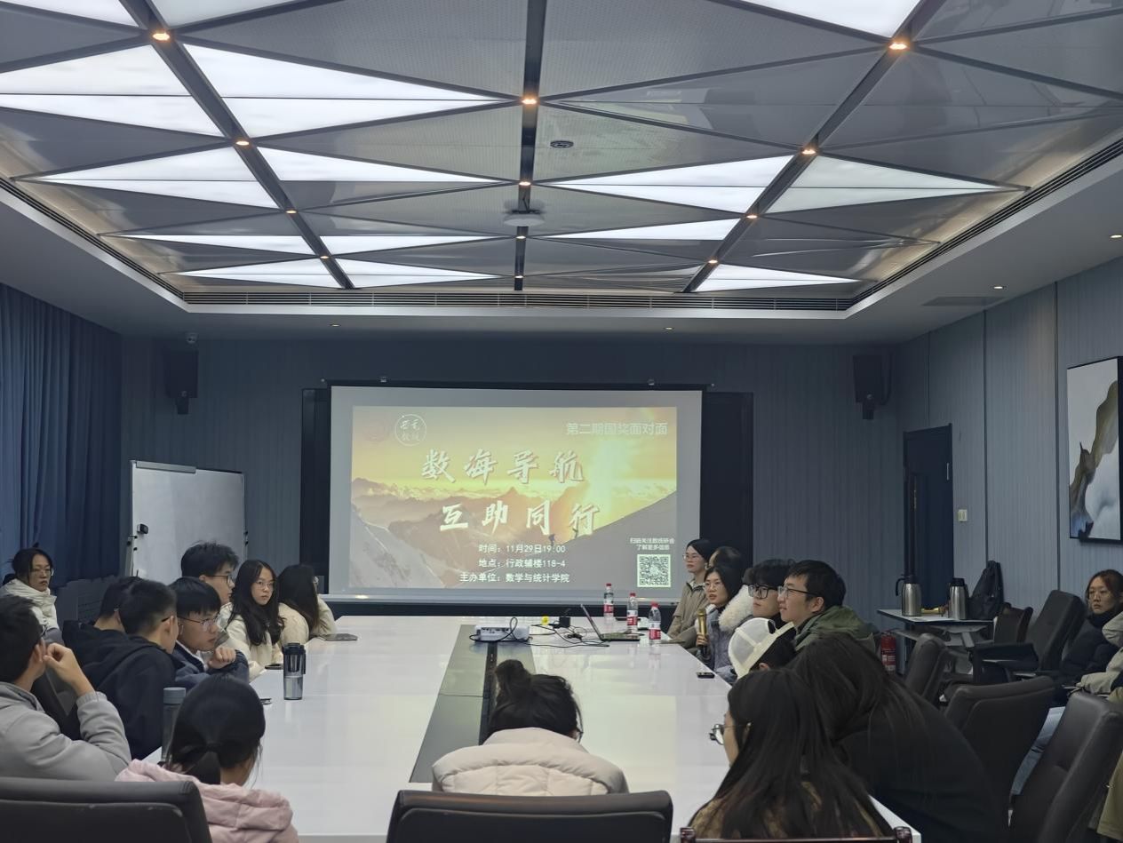 (通讯员 延维维)为促进优良学风建设,充分发挥榜样引领作用,引导同学们勤奋学习、励志成才。sunbet于11月29日在行政辅楼118-4会议室举办了“数海导航,互助同行”国奖面对面活动。活动邀请国奖获得者与同学们面对面交流,40余名研究生参与本次活动。