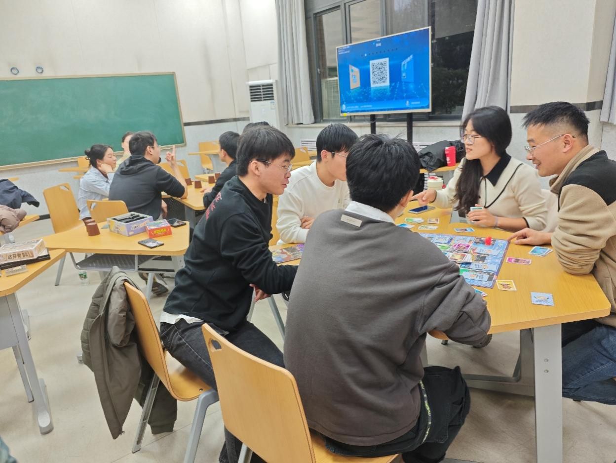 活动伊始,主持人引导大家进行自我介绍。每位同学简短地介绍了自己的姓名、研究方向和兴趣爱好,为后续的交流互动奠定了基础。随后,精彩的桌游环节拉开帷幕。本次活动精心挑选了多款热门游戏,这些游戏不仅考验参与者的逻辑思维、推理能力和沟通技巧,还极大地激发了大家的团队合作精神和竞争意识。同学们在游戏中展现出极高的参与度和创新思维,整个活动现场气氛热烈而充满活力。