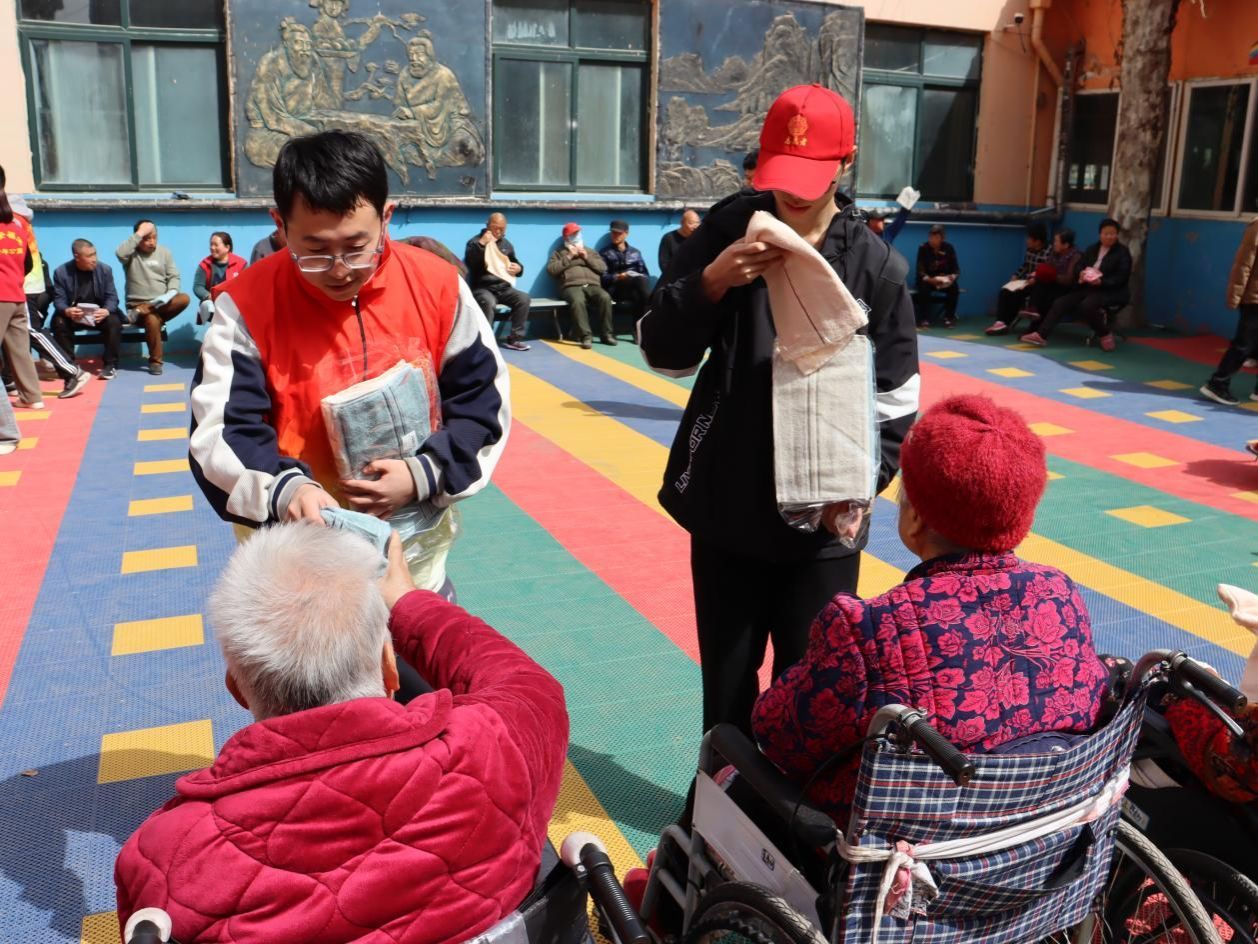 从公园返回养老院后,志愿者们精心准备的文艺表演正式开始。首先表演的是一段活力四射的双人舞蹈,志愿者用灵动的舞姿和饱满的热情,瞬间活跃了现场的气氛,老人们纷纷鼓掌喝彩。接着是唱歌节目,美好的歌声令老人们喜笑颜开。表演结束后,志愿者们将准备好的毛巾作为礼物分发给每一位老人。这些毛巾虽然只是一份小小的礼物,但却饱含着志愿者们对老人们的关心和祝福,希望能给他们带来温暖和关怀。老人们接过毛巾,脸上洋溢着幸福的笑容,纷纷对志愿者们表示感谢。