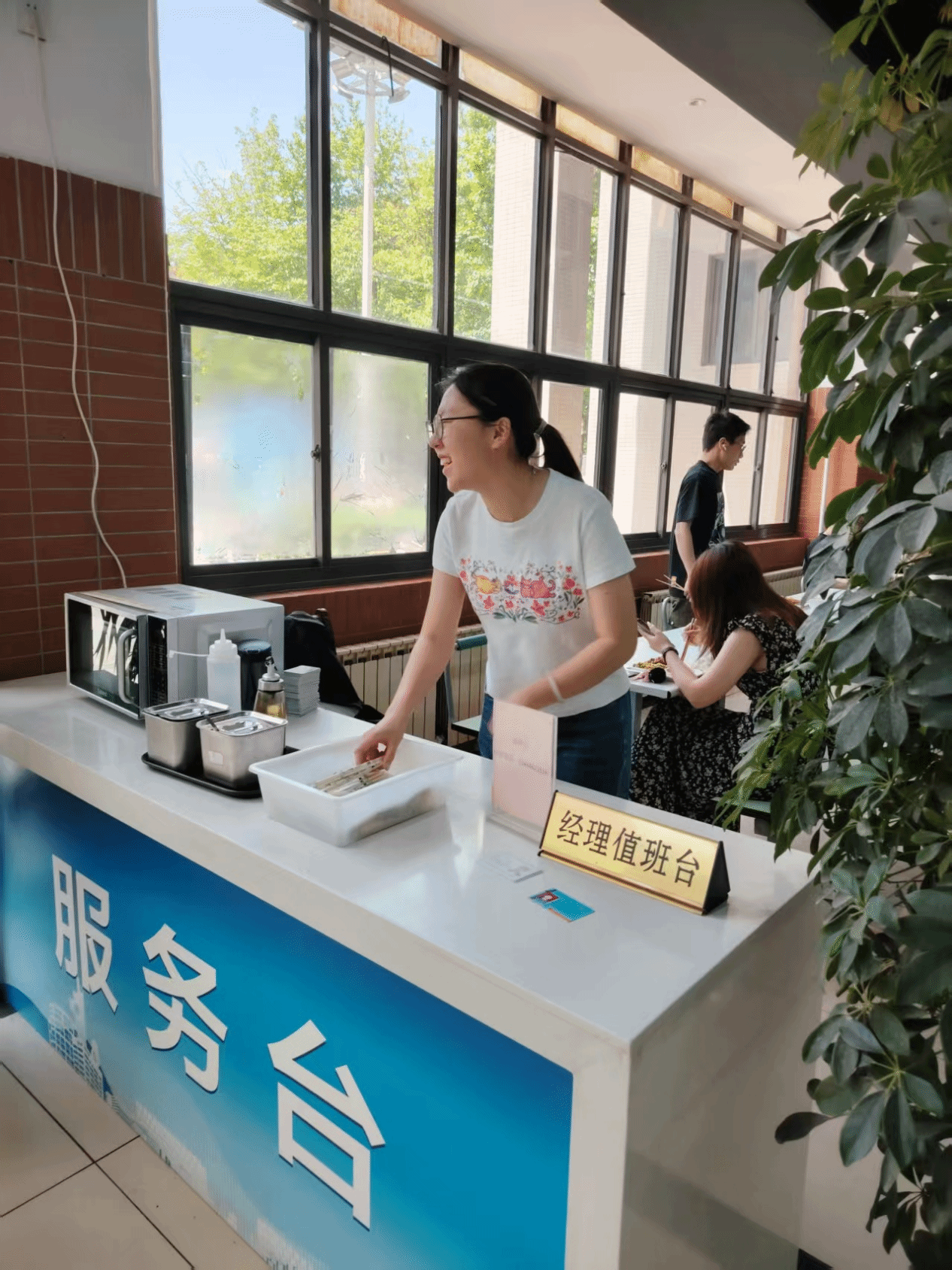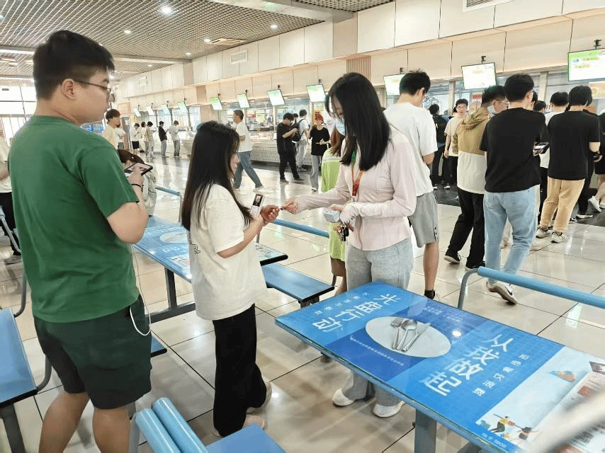 为配合公司“一元餐”政策的顺利实施,美好食光引导员岗位的同学们在食堂开展了秩序维护、文明倡导等工作。同学们热情引导就餐人员有序排队,提醒大家按需取餐、避免浪费。同时,他们还收集同学们对食堂菜品的建议,并及时反馈给后勤部门,架起了员工与食堂之间的沟通桥梁。“看到同学们在引导下自觉排队、节约粮食,我觉得我们的付出很有意义。”李晓敏同学说道。此外,引导员们还协助规范自行车停放,确保食堂周边环境整洁有序。他们的辛勤付出,让食堂就餐环境更加和谐,也让“光盘行动”深入人心。