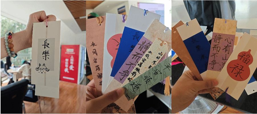 同学们踊跃参加,在彩色卡纸、压花贴纸、多彩丝线等丰富素材中挑选心仪元素,或涂鸦、或写字、或剪贴、或绘画,每一枚书签都独具匠心,色彩与文字的碰撞令人目不暇接,通过动手制作书签,将“阅读”这一相对静态的行为与“手作”这一动态的创意过程结合,让参与者在轻松愉悦的氛围中重新审视阅读的乐趣。