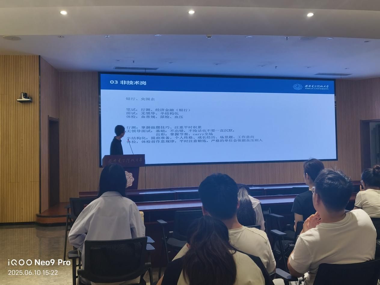 此次分享会内容丰富、指导性强,不仅帮助同学们深入了解了不同行业的就业流程与准备要点,也为大家提供了实用的求职建议与经验指导。通过两位同学的真诚分享,参会同学进一步明确了就业方向,增强了求职信心。公司将继续以员工需求为导向,持续开展多形式、分领域的就业指导活动,搭建经验交流平台,助力同学们提升职业素养,实现更加充分和高质量的就业。