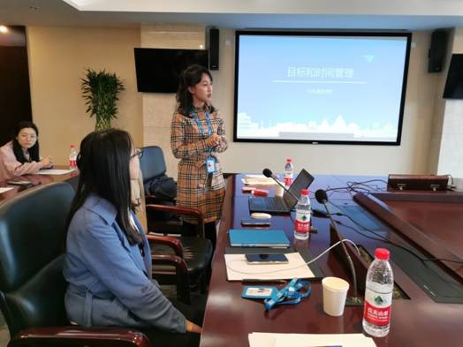 在短暂的休息之后,开始了下午的金牌讲师张宁带来的职业素养培训课程《目标和时间管理》。将所有人分组,利用回答问题发卡牌的方式调动了大家的积极性。学习到了目标设定的SMART原则、时间管理的矩阵框架、要事第一以及如何制定周计划等。一个个生动的例子,有趣的故事,为期两个半小时课程,使大家受益匪浅。