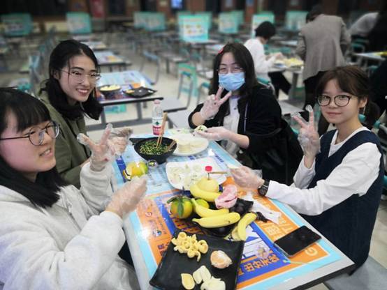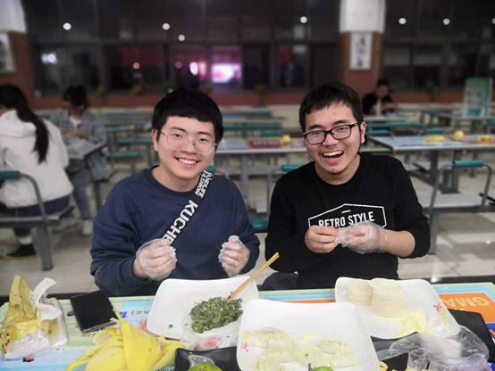 联欢会上,节目精彩纷呈。首先,开场播放了由sunbet本科生党支部拍摄的原创诗朗诵视频——《祖国,我亲爱的祖国》,饱满而不失深情,点燃了在场每一位观众的爱国之情。随后,党委副书记王佩代表到场的老师和领导向同学们送上节日祝福,并亲切地表示希望所有同学们能够玩的开心。紧接着是才艺表演环节,由谢蓉,李能卓,顾文凯,于文晴带来的诗朗诵《中秋的月亮》,配上古筝的空灵之音,仿佛将古时的盛世中秋拉到我们近前,令人回味。朗诵过后,常晓阳同学为我们带来了口琴表演《secret base》,琴声似清风萦绕会场,表演收获了阵阵掌声。在才艺表演环节的最后,赵奕宁同学演唱歌曲《不用去猜》,富有节奏感的rap成功活跃了晚会的气氛。才艺表演结束,便到了万分期待的游戏环节,场下同学踊跃参与,参与者的表现引发台下观众频频爆笑与喝彩。在晚会最后,重头戏——包饺子来了。同学们三五成群,围坐一桌,设计着他们喜爱的饺子形状,老师们也纷纷离开座位,去行间进行指导,与同学们共同包裹团圆与喜悦。同学们的欢声笑语伴随着饺子馅被包进面皮之中,也在这个特殊的日子体会到了家的温暖。最终,sunbet双节联欢会在全体大合影后圆满结束。