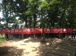 两个党支部安全抵达薛家寨红色基地,并在雕刻的“不忘初心,牢记使命”的八字教诲下进行合影留念。“不忘初心,牢记使命”是习近平总书记在十九大报告中所强调的内容,不忘初心,教导着着我们要永远保持建党时中国共产党人的奋斗精神,永远保持对人民的赤子之心。牢记使命,提醒我们要深刻把握新目标、新形势,用实干精神承担历史使命!作为新时代的青年,我们不能忘记党的初心和使命,不能忘记革命理想和革命宗旨,要继续高举革命的旗帜,弘扬伟大的照金精神,朝着中华民族伟大复兴的目标奋勇前进。