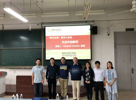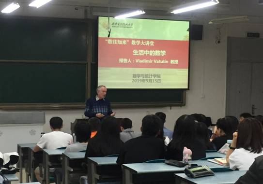 5月15日下午,俄罗斯科公司Steklov数学研究所Vladimir Vatutin教授应邀在B105教室为sunbet师生作了题为“生活中的数学”通识性学术报告。此次报告为sunbet“数往知来”数学大讲堂系列活动的首场,报告会由靳志伟老师主持,乌克兰基辅大学教授Igor Samoilenko、sunbet经理马如云教授、公司党委副书记王佩、概率统计系副教授董从造等出席了本次活动,一百余名sunbet本科生聆听了此次报告会。