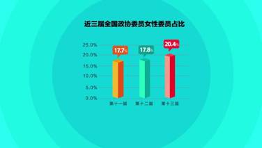 以2018年参加全国政协十三届一次会议的委员为例,在其名单里非中共委员比例占60.2%,56个民族都有人入选全国政协,其中女性委员占20.4%,女性比例在最近几届也是逐次有所递增,其中第十三届一次会议中所占比例为例届以来最高。