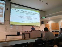 此次人工智能国际访学AIIA项目包括计算机科学、人工智能、数学等方向的教授和专家主题报告,包括:人工智能和机器学习、计算机视觉、自然语言处理、数据科学、AI应用、信息安全与软件工程等。在阿尔伯塔大学的精心安排下,共有十余位教授、工程师、博士为我们带来了20场与人工智能相关的讲座。第一场讲座是由Dr. Mario Nascimento带来的《Opening Lecture :Artificial Intelligence @ UAlberta》,他对阿尔伯塔大学的人工智能研究发展方面状况的介绍,引入了一些AI的基础知识,正式开启了我们在人工智能方面的学习。博士生Yi Wan带来的题为《Reinforcement Learning》的强化学习讲座,带我们了解有关强化学习的知识的同时也介绍了他步入人工智能领域的历程;Dillam为我们介绍了物联网行业的发展、AI在物联网中的应用等等,他的报告题目为《Introduction to the Internet of Things and Real Application》;教授Greg Kondrak及他的员工为我们带来了名为《Introduction to Natural Language Processing》的报告,为我们揭示了语音识别技术的奥秘及人工智能技术在语音识别领域的应用;Dr. Bin Zheng带来了名为《AI Applications in Surgery》的报告,通过展示一系列实例让我们见识到人工智能技术在外科手术中能发挥的巨大作用;Dr. Lihang Ying为我们带来了题为《Deep Learning》《Multimedia》的两个报告,讲解了LSTM(Long Short Term Memory)与RNN(Recurrent Neural Network)的优与劣,介绍了Q矩阵算法在图像识别、轮廓提取中的应用;博士生Tian Liang为我们带来了名为《AI Application in Power Systems》的报告,展现了人工智能技术如何被应用于电力系统;并向我们介绍了有关区块链Blockchain的运作原理;Dr. Bin Han作了题为《Application of Wavelet Theory in Image Processing》的报告,向我们介绍了小波分析在图像修复中的作用;Dr. Benjamin Tucker为我们带来了《Machine Learning and Conversational Speech》,介绍了人工智能技术在语音识别领域的作用以及给发音障碍者带来的帮助;Dr. Yau Shu Wong带来了题为《Data Mining》的报告,讲解了相关算法;助理教授、精神病学博士Dr. Bo Cao的《Machine Learning and Psychiatry》报告,带我们了解了几种常见的精神疾病如精神分裂症、抑郁症、躁狂症等,展现了患病者的大脑发生的变化,以及机器学习在精神病学方面的应用;Shi Jin的《Cloud Computing》为我们介绍了SHA256加密算法,向我们展现了云计算的基本原理,并为我们现场展示了如何进行服务器租赁以及三种云:Private,Public及Hybrid之间的区别与联系。丰富的报告让我们对这些领域的知识及应用产生了浓厚兴趣,对自己专业的理解更为深刻,清晰了解专业的应用方向及应用领域。
