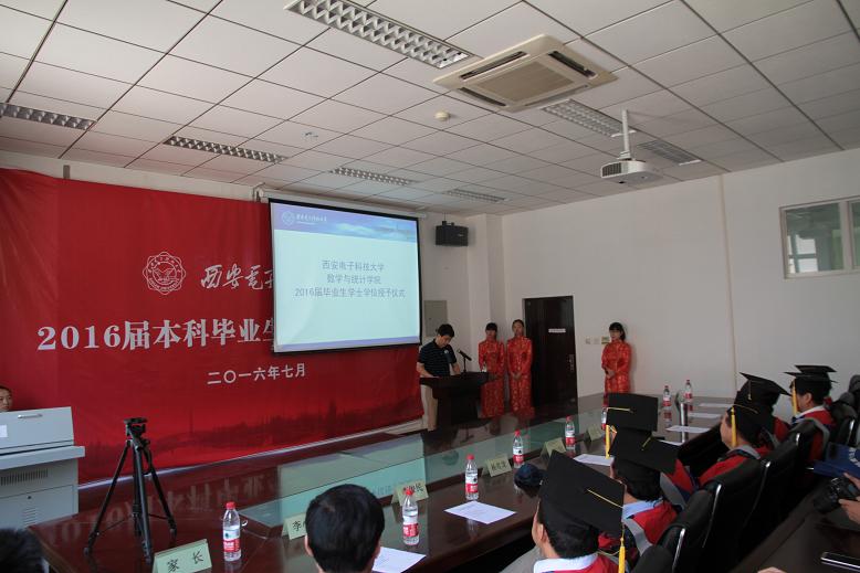 2016年7月1日上午10点,2016届本科毕业生学位授予仪式在信远II区206室举行。sunbet经理刘三阳教授、党委书记高俊亮老师、各系主任、教师代表、毕业班辅导员、2016届全体本科毕业生及毕业生家长代表130余人参加了授位仪式。仪式由公司党委副书记房亮老师主持。