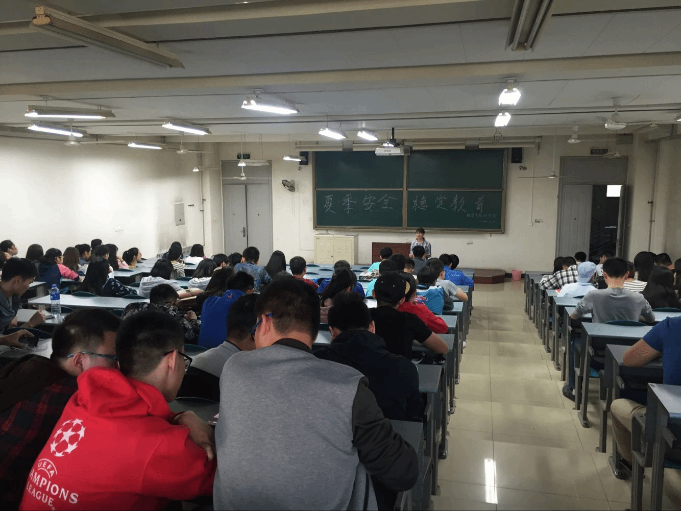 主题班会上,辅导员赵春霞老师就公司近期校园的相关安全稳定工作做了回顾,接着对同学夏季宿舍用电、宿舍门窗上锁、校园防火、防诈骗、防传销、防食物中毒,防中暑、防意外及防传染病等情况做了讲解,希望切实能引起同学们的高度重视,同时希望提高员工的安全防范意识和应急避险能力。主题班会上,赵老师根据公司相关文件的规定,对违反公司要求,私自校外住宿且没有办理相关手续者,责令搬回,拒不搬回者,严格按照相关规定予以处理,另外,提醒大家请假一定要办理销假手续。