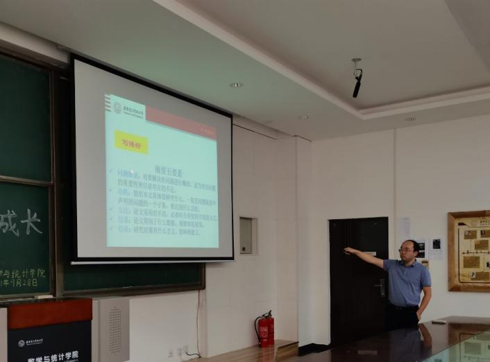 刘振华教授以研究生的“四得”为主题进行此次分享。第一,关于论文文献如何查找的问题,刘教授鼓励员工查阅经典著作,浏览顶会顶刊,并希望大家多看论文,从而实现量变到质变的飞跃。第二,关于论文如何阅读的问题,刘教授谈到:在阅读文献正文之前,要提出疑惑,然后浏览下文;在阅读论文的过程中,要通过文献的题目和摘要,发现亮点和创新点,及时做好笔记记录下来,记住作者发现问题、解决问题的办法和思维。第三,在日常生活中,刘教授鼓励员工多思考,在交流中激发灵感,从而提高论文的创新性。第四,关于如何写论文的问题,刘教授向大家推荐了“学位与写作”公众号,并说道,在写作论文时,要将题目浓缩成精华,呈现摘要的亮点和创新点。最后,刘教授提出了摘要五要素:问题陈述、动机、方法、结果和结论,然后详细讲解了其中的具体要求,同学们纷纷拿出纸笔记录,收获颇丰。刘教授的分享具体、生动,既展示了作为一名数学教授的智慧,也充分展示了严谨、积极的学习态度。此类活动解决了同学们在科研论文和日常生活方面的困扰,使同学们更加明确今后的努力方向。