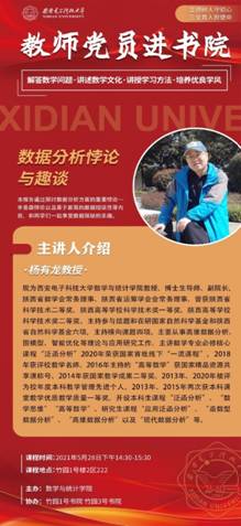 (通讯员:董晓影 孟纬茜)“教师党员进书院”系列活动的持续举办,吸引了越来越多的同学们参与进来,老师们也用多样的讲课形式以及丰富的知识储备为同学们授业解惑。系列活动第十一期将于2021年5月28日下午2:30在竹园1号书院和竹园3号书院进行。杨有龙老师进驻竹园1号书院,他从实例出发,用了录取率和药效的两个生动案例,引出了辛普森悖论。杨有龙老师通过案例分析,告诉同学们统计很多时候并不能简单地相加求和,进一步讲...
