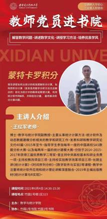 “教师党员进书院”系列活动在本学期已经顺利开展三期了,教师党员们秉承着“我为师生办实事”的理念,走进书院,走近员工,讲授数学学习方法,培养数学学习兴趣。系列活动第十二期于2021年6月4日下午2:30到3:30在竹园1号和3号书院进行。王红军老师走进竹园1号书院,为同学们讲解蒙特卡罗积分。首先,王红军老师给出一个定积分,同学们都知道可以用“牛顿—莱布尼茨”公式求解,然而他又给出一个不能用该公式求解的定积分,为...
