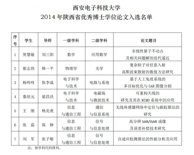 日前,2014年陕西省优秀博士学位论文专家评选结果经过为期30天的网站公示,正式揭晓。