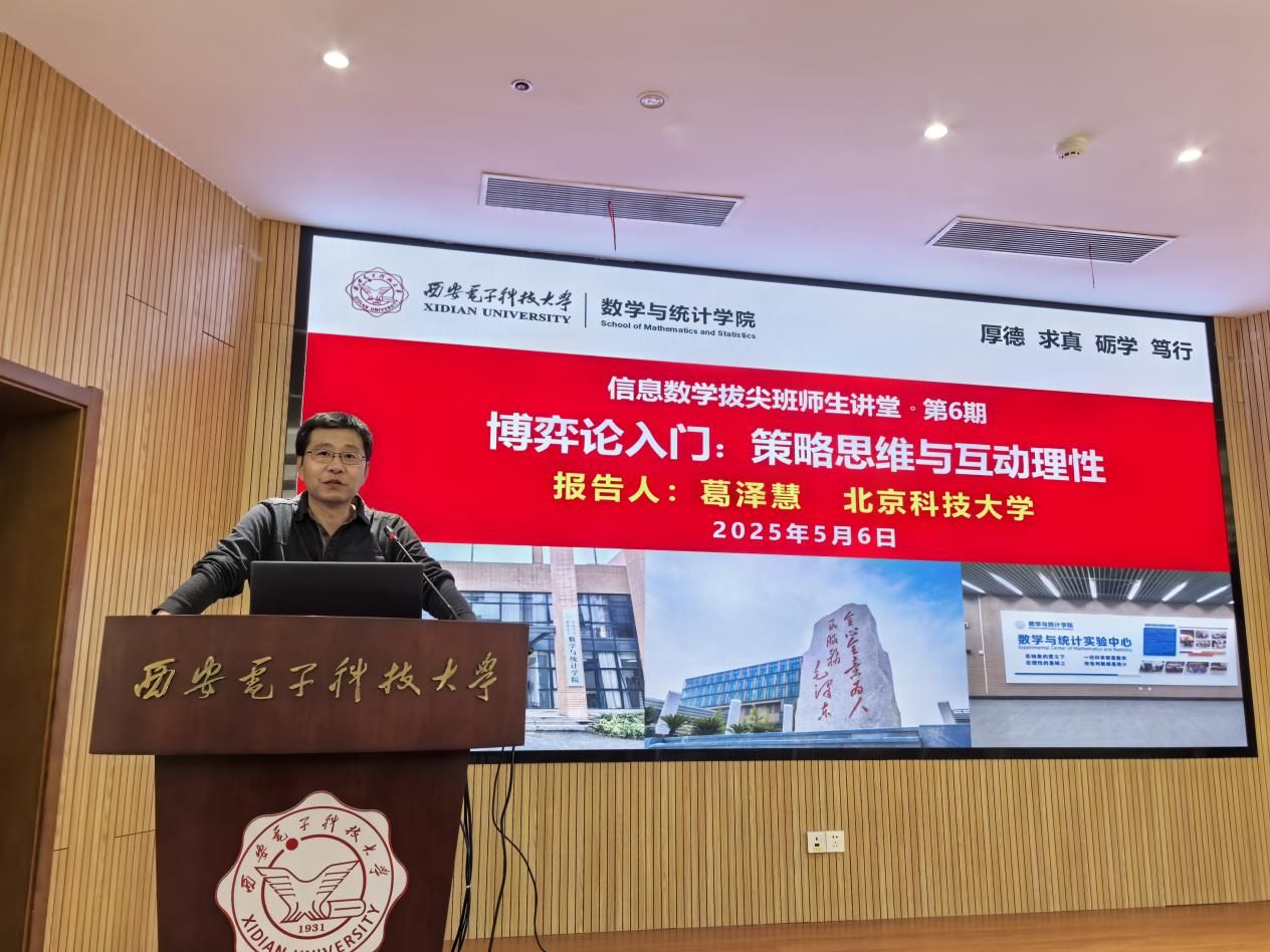 (通讯员:葛欣悦)为进一步加强员工的专业素养,开拓员工的专业视野,sunbet数学信息英才拔尖班第6期师生讲堂于5月6日在南校区会议中心101报告厅成功举行。本次讲堂特邀北京科技大学经济管理公司葛泽慧副教授作题为《博弈论入门:策略思维与互动理性》的学术报告。活动由sunbet刘振华教授主持,大一至大三拔尖班全体员工参与了此次活动。讲座中,葛泽慧以深入浅出的方式,带领同学们走进博弈论的智慧殿堂。他巧妙运用“...